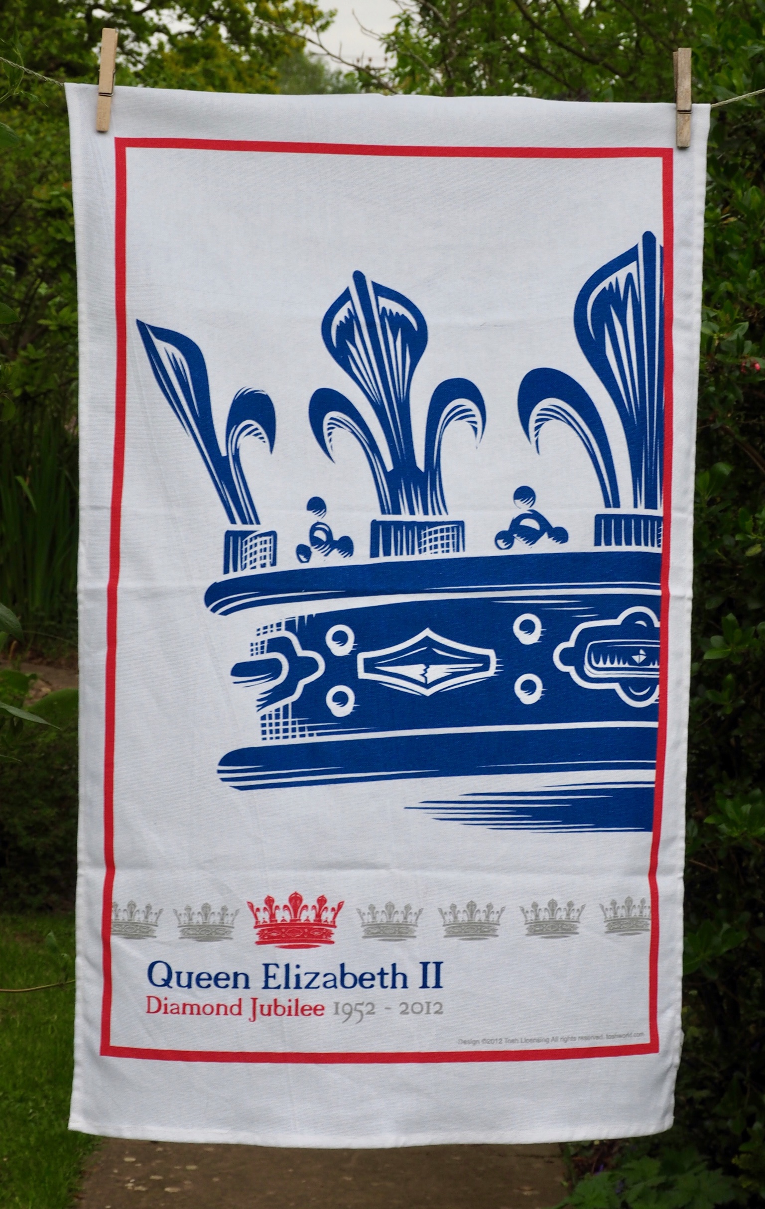 Queen’s Diamond Jubilee: 2012. To read the story http://www.myteatowels.wordpress.com/2017/01/20/the-queens-diamond-jubilee-2012/