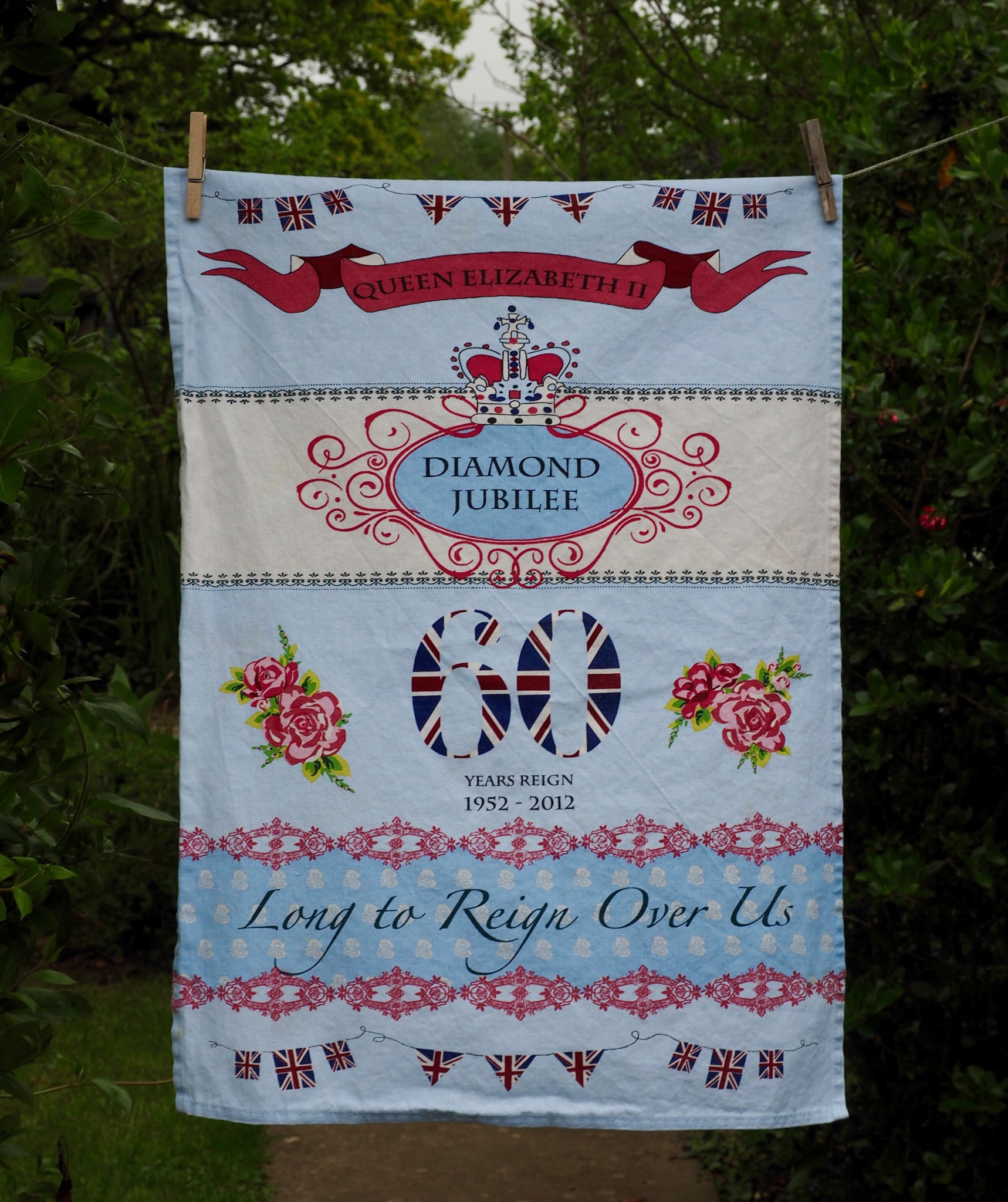 Queen’s Diamond Jubilee:2012. To read the story http://www.myteatowels.wordpress.com/2017/01/20/the-queens-diamond-jubilee-2012/