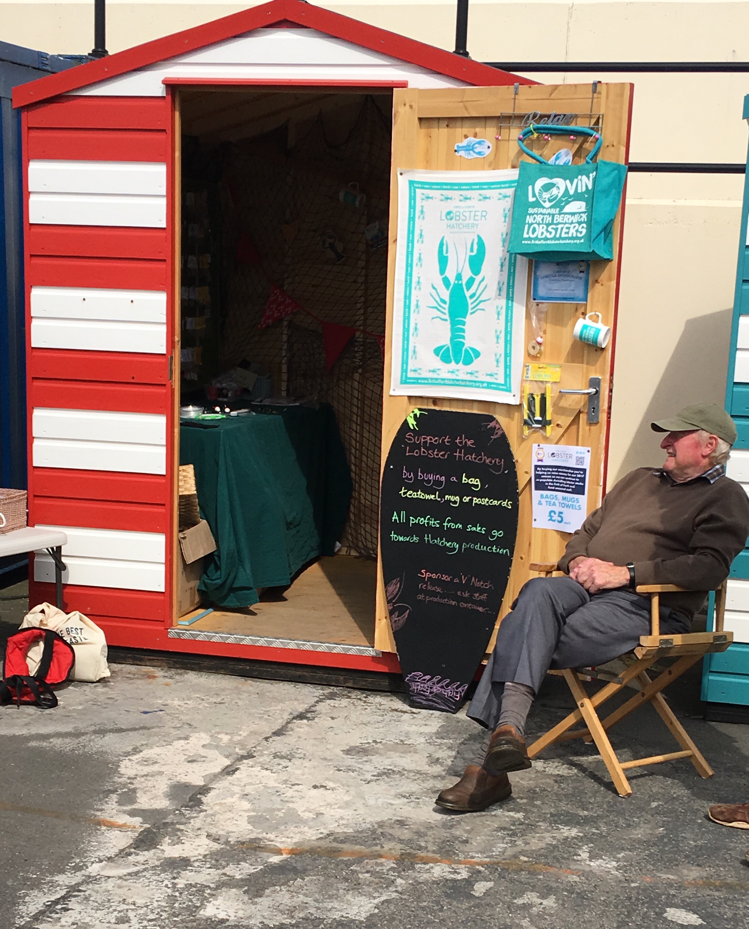 September 5, 2017 Firth of Forth Lobster Hatchery 2499 × 3099 FullSizeRender Man enjoying the Lobster Hatchery tea towel at North Berwick – selling from the Beach Huts!